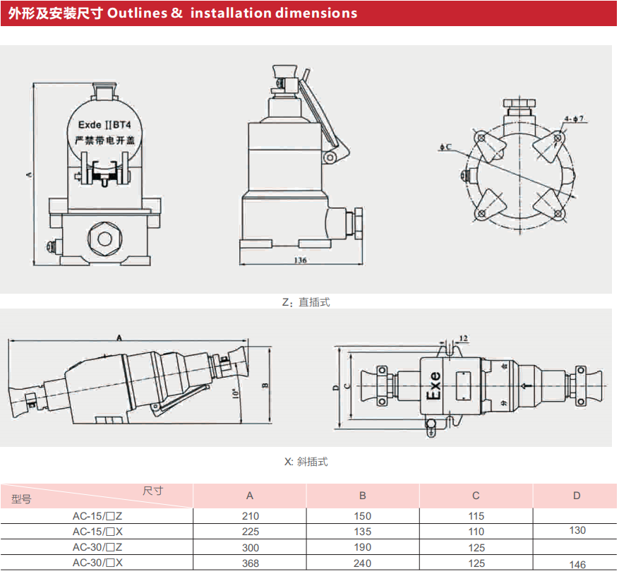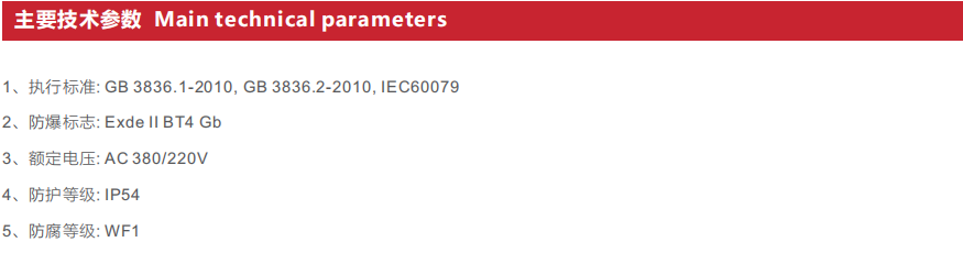 ●適用于ⅡA、ⅡB類,溫度組別為T1-T6的爆炸性氣體環(huán)境。