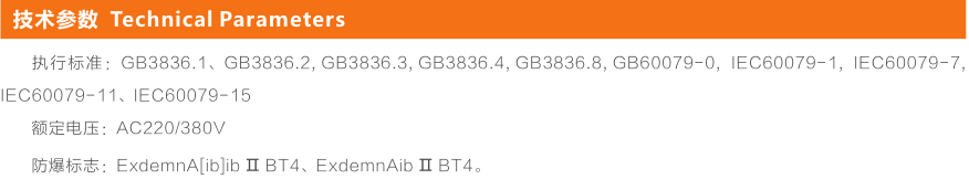 ● 適用于ⅡA、ⅡB、ⅡC級(jí)爆炸性氣體環(huán)境;