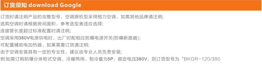 ● 空調(diào)按性能可分為單冷和冷暖兩種;防爆空調(diào)是在優(yōu)質(zhì)名牌空調(diào)的基礎(chǔ)上,按照GB3836系列標(biāo)準(zhǔn)的要求進(jìn)行防爆設(shè)計(jì),采用特殊加工工藝和制造方法進(jìn)行防爆工處理;一般情況下,柜式空調(diào)原機(jī)型采用格力相應(yīng)規(guī)格的空調(diào).可根據(jù)用戶要求選擇空調(diào)品牌;防爆空調(diào)管路連接和普通空調(diào)一致,電氣連接一定要按防爆電器安裝工藝要求,先將電源引入防爆控制箱,再?gòu)姆辣刂葡湟氲绞覂?nèi)機(jī)和室外機(jī);所有防爆空調(diào)出廠時(shí).均附有全套產(chǎn)品技術(shù)資料和安裝使用說明書,請(qǐng)用戶務(wù)必嚴(yán)格說明書的要求進(jìn)行安裝和使用;產(chǎn)品結(jié)構(gòu)緊湊,造型美觀大方,安裝維護(hù)方便;鋼管或電纜布線