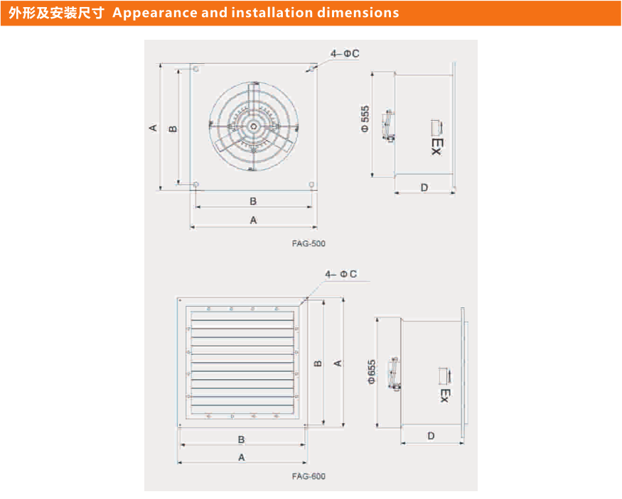 ● FAG系列防爆壁式排風(fēng)扇由防爆電機(jī)、 扇葉、 面板等部分組成, 風(fēng)扇面板采用優(yōu)質(zhì)鋼板焊接而成, 葉片由鋁合金壓鑄成型, 表面高壓靜電噴塑,適用于爆炸性氣體環(huán)境1區(qū)、2區(qū), ⅡA、 Ⅱ B類,溫度組別為T1~T4組的石油采煉、儲存、化工、醫(yī)藥、軍工及軍事設(shè)施等爆炸性危險環(huán)境, 作為廠房、 倉庫通風(fēng)換氣, 實(shí)驗(yàn)室內(nèi)空氣流通和更新之用 。