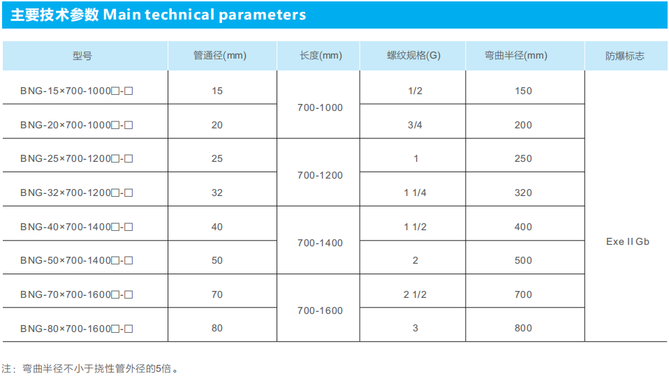 ●主要適用于1區(qū)或2區(qū)危險場所,Ⅱ類爆炸性環(huán)境中,用于具有振動或彎曲設(shè)備的連接、配管之用