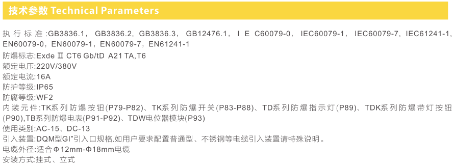 ● 內裝防爆按鈕采用膠粘工藝,保證了可靠的結合強度;內裝防爆指示燈采用牛條珠的設計,交流220/380V通用;