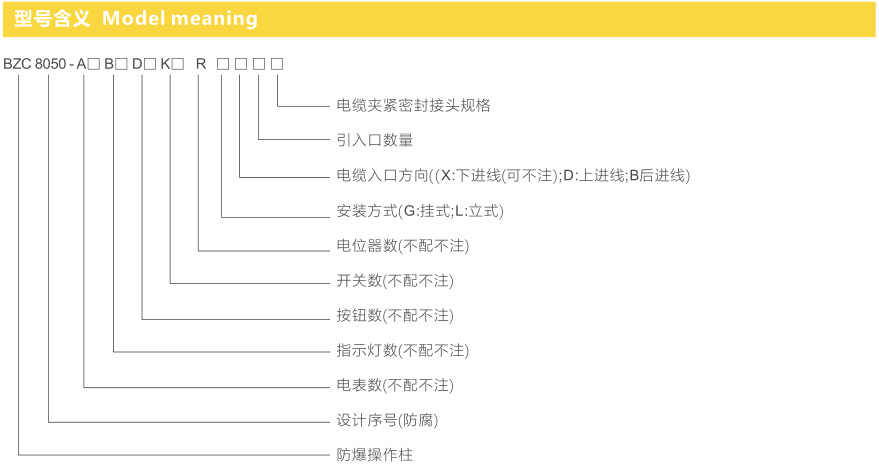 ● 內裝隔爆型控制開關結構緊湊,可靠性高,體積小,通斷能力強,壽命長并有多種功能供用戶選配;
