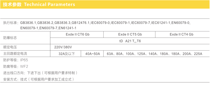 總開(kāi)關(guān),分開(kāi)關(guān)操作面板區(qū)分明顯,便于現(xiàn)場(chǎng)識(shí)別;內(nèi)裝斷路器為特制的防爆原件;總開(kāi)關(guān)電流最大可至225A;模塊化設(shè)計(jì),多回路組合。
